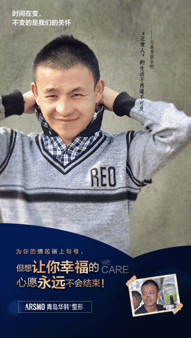 李明無時無刻不期待有一天奇跡降臨,自己能擁有一個正常的鼻子。他在微博上表達(dá)的這個愿望,被媒體轉(zhuǎn)載。最終華韓整形走進(jìn)了他的生活,橫跨接近整整一年的時間,華韓整形的醫(yī)生們通過四期手術(shù),成功地讓李明“長”出了新鼻子。
